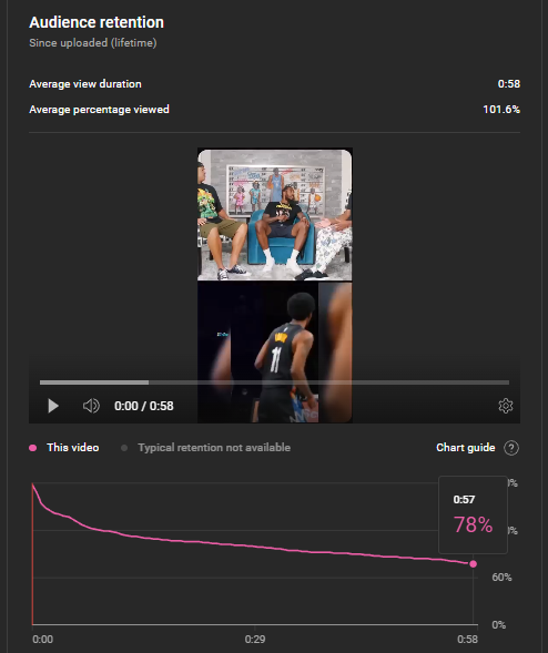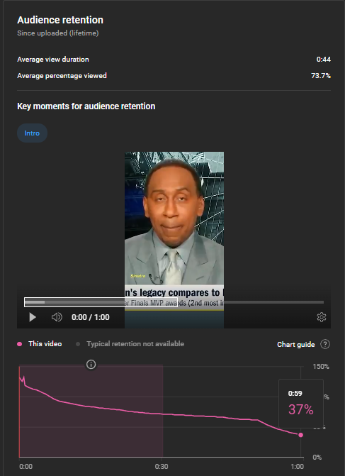 Initial Retention Rate Observation: In the initial phase, I observed that my audience started to drop off around the 42-second mark. Consequently, by the end of the video, my retention rate was below 60%.