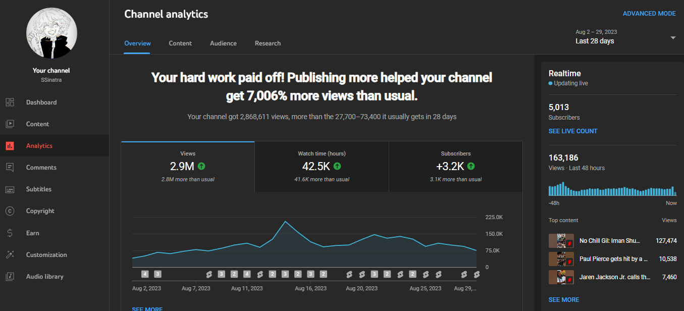 Several of my most viewed videos serve as prime examples of my strategic content approach. Leveraging popular NBA superstars such as Stephen Curry, LeBron James, and Kevin Durant, I tapped into trending topics to capture attention. Skillful utilization of captivating titles and attention-grabbing thumbnails further enhanced click-through rates. These videos not only attracted substantial views but also fostered engagement and discussions within the community, solidifying my position as a reliable source of engaging content.